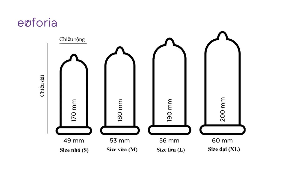 Dựa vào số đo trên, bạn có thể tham khảo bảng kích thước bao cao su để chọn loại phù hợp: