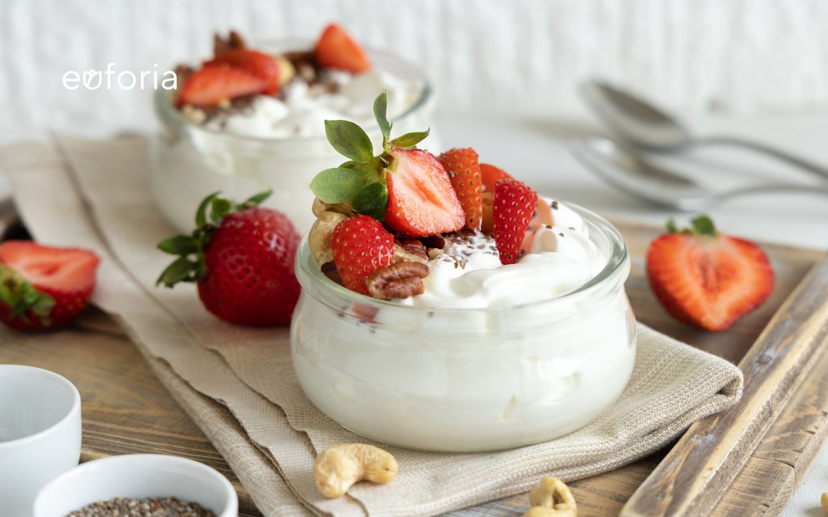 - Sữa chua: Sữa chua chứa lợi khuẩn probiotic giúp duy trì môi trường cân bằng của âm đạo, hỗ trợ ngăn ngừa khô hạn và các bệnh viêm nhiễm.